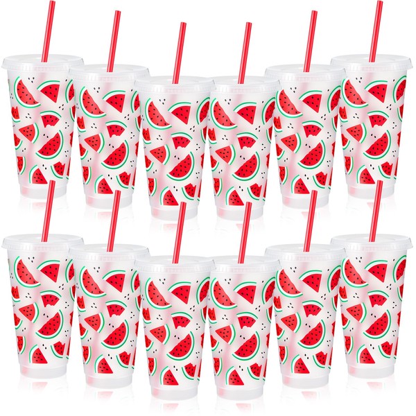 SiliFine 12 Pcs Plastic Watermelon Cups 24oz Reusable Watermelon Tumbler with Lid and Straw Watermelon Party Decorations Watermelon Gifts for Summer Party Favors Birthday Supplies