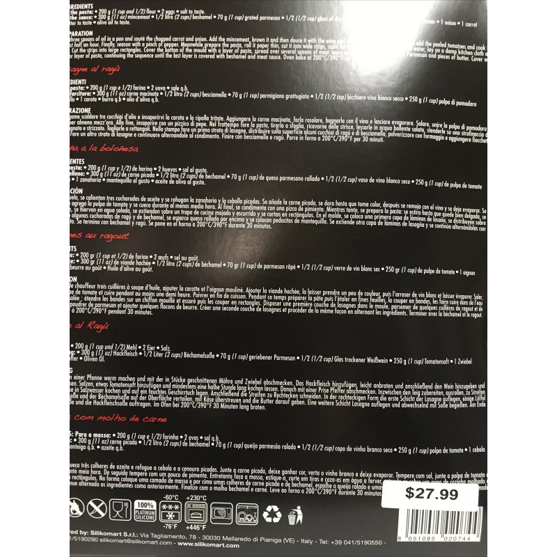 Silikomart Rectangular Baking Dish Silicone Baking Pan Lasagna 11" x 8.5" x1.5"