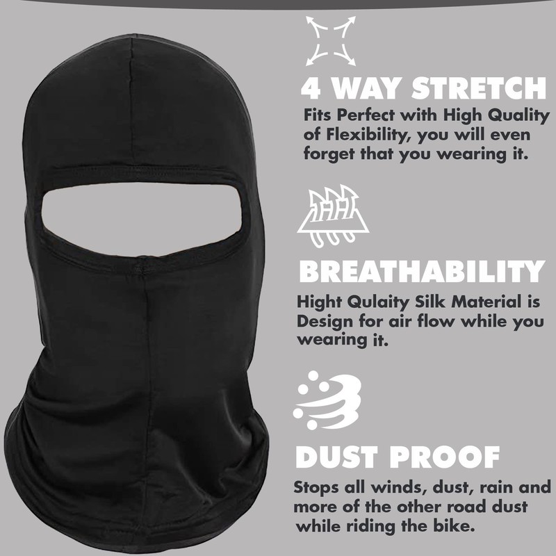 - [ COMFORTABLE MATERIAL ]: Our Balaclava Face Mask is breathable, wrinkle free, and lightweight; comprised of 100% imitation silk fabric for face protection. The face cover has swan beautifully and securely, with well-balanced seams that will not scratch your skin. The soft and elastic fabric makes it more comfortable to wear. Longer neck for better wind and cold protection, improved cut and different sewing angle for better fit on your head.