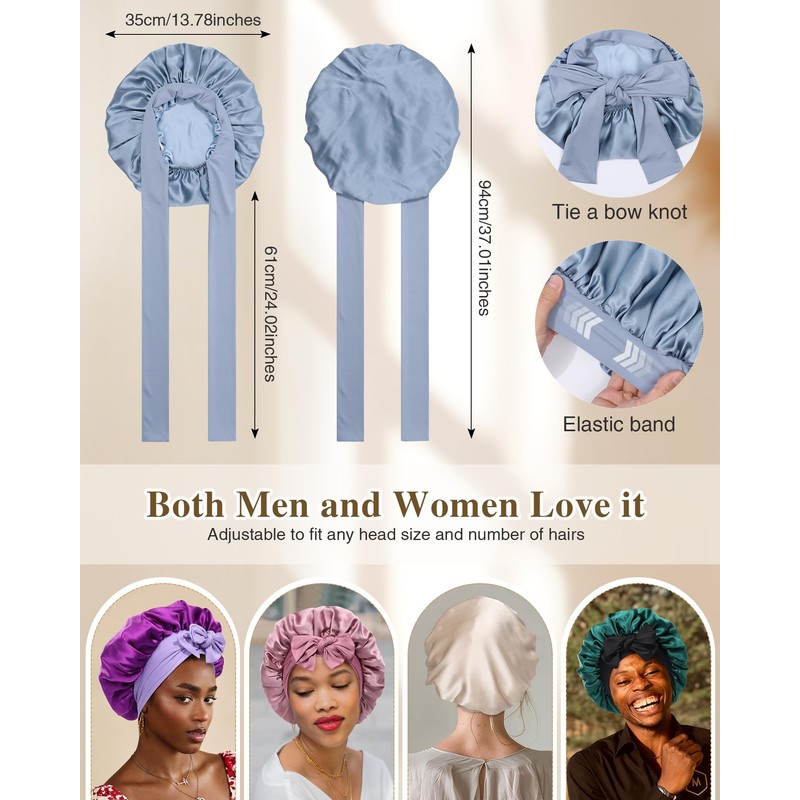 *Suitable size for most people: Silk Hair Bonnet flat diameter up to: 35cm/13.78inches.This is adjustable size bonnet,widely used for Women or men curly hair,wigs, natural hair,suitable for most of women or men hairs.