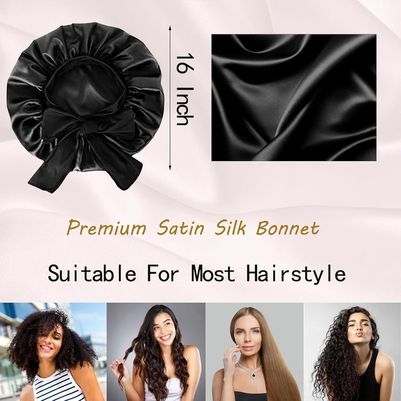 • The diameter of this silk hair bonnet is 16 inches, and it has a soft elastic band .You can tie a bow on your head, which is a total household fashion item