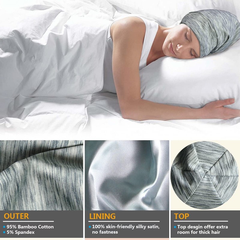 - ❤【2024 Latest Updated Formula】The silk sleeping cap lined for men and women is 100% Satin,the outer is 95% bamboo and 5% polyester.Silk cap for sleeping pull button freely adjustable.Easy to clean, fashionablev silk hair cover cap for sleeping,outdoor,Go shopping,travel.Recommend manual cleaning.