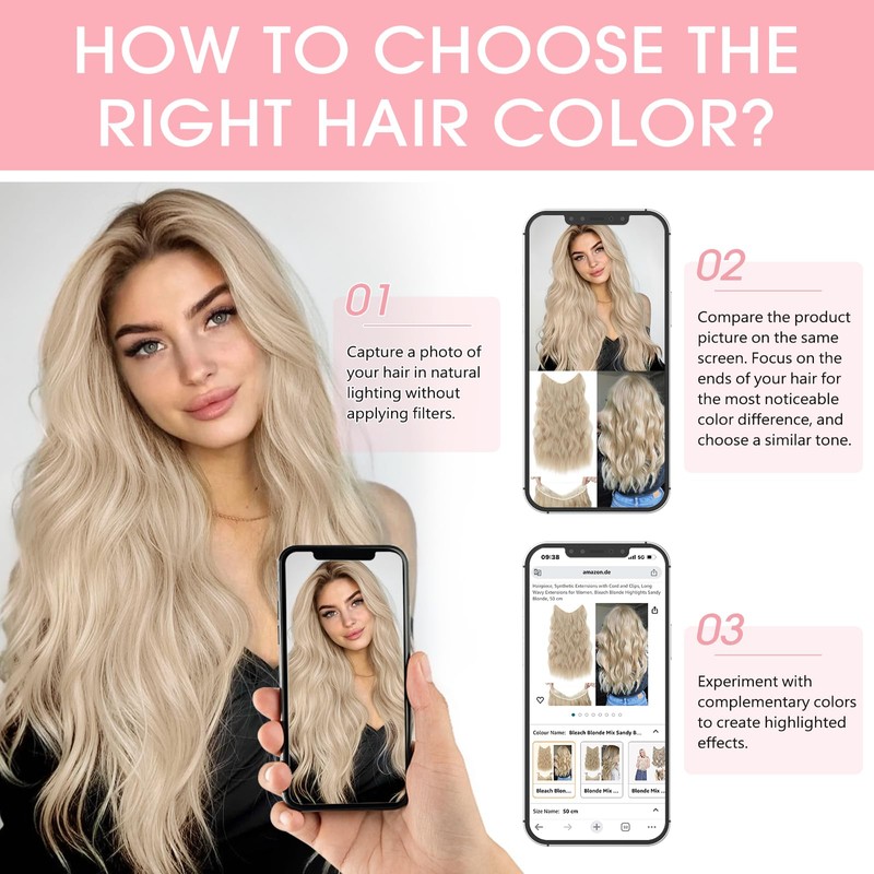 - Easy to use: just one hand is enough and the transformation begins. Like a hair band, put on the extension, secure it with a few clips and let your own hair complete the invisible magic. Thanks to the adjustable transparent wire and carefully placed clips, it integrates perfectly. Additional hooks provide a grip that never lets you down.