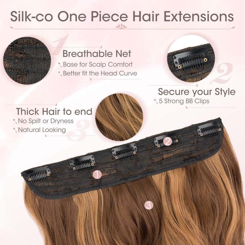- 💎【One Piece Clip In Hair Extensions】Our five-clip extensions feature an integrated design that makes installation a breeze. With five secure clips, they ensure a seamless application without any hassle. The mesh base hugs your scalp perfectly, making it virtually undetectable, and it’s gentle on your natural hair. Boasting a trendy design, these extensions provide a modern upgrade to your look.