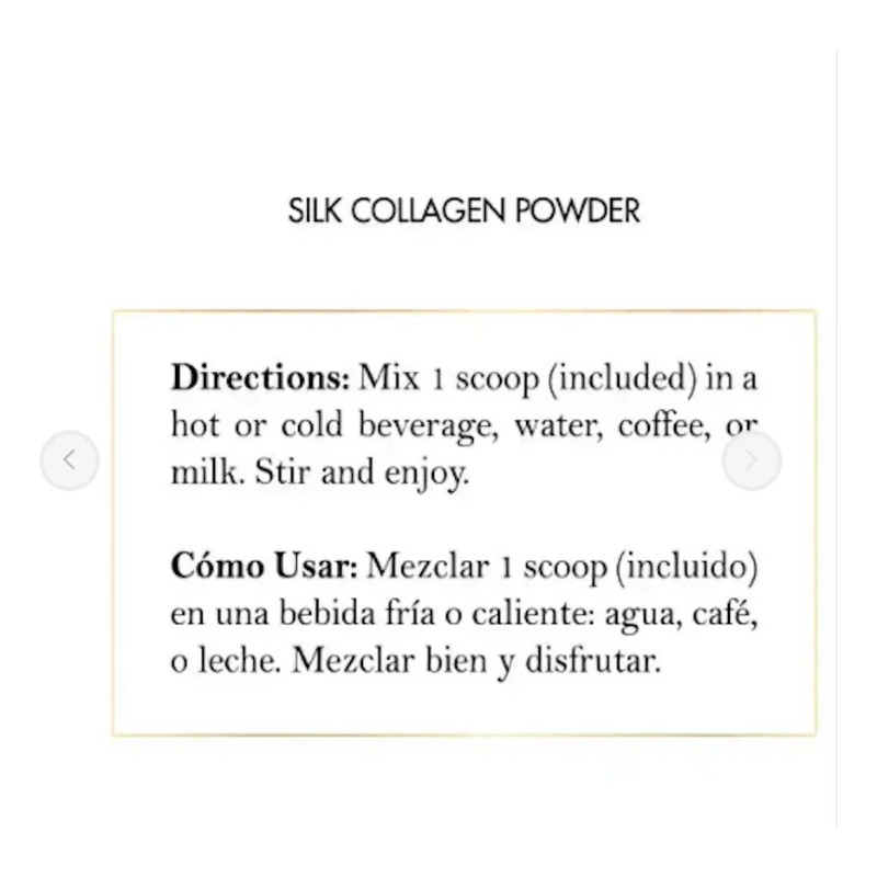 Las propiedades del Silk Collagen se han estudiado y utilizado durante mucho tiempo en el campo médico para la reparación y el rejuvenecimiento de la piel. Elixir Silk Face Serum revolucionó la industria cosmética con su poder reparador antienvejecimiento. Cuando se combina con Elixir Silk Collagen, puedes llevar tu régimen de belleza al siguiente nivel. Añade Elixir Silk Collagen a tu rutina diaria para experimentar cambios notables en tu piel, uñas y articulaciones.