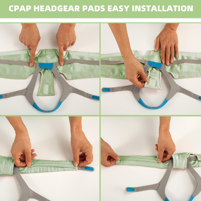CPAP headgear pads Soft cushioning pads to relieve pressure, irritation and unsightly red marks. CPAP accessories for women and men Easy to install, suitable for full face CPAP headgear,f20 headgear,n20 headgearetc. CPAP headgear strap covers Made of ultra-soft satin, wicks away moisture for all-night comfort, machine washable.