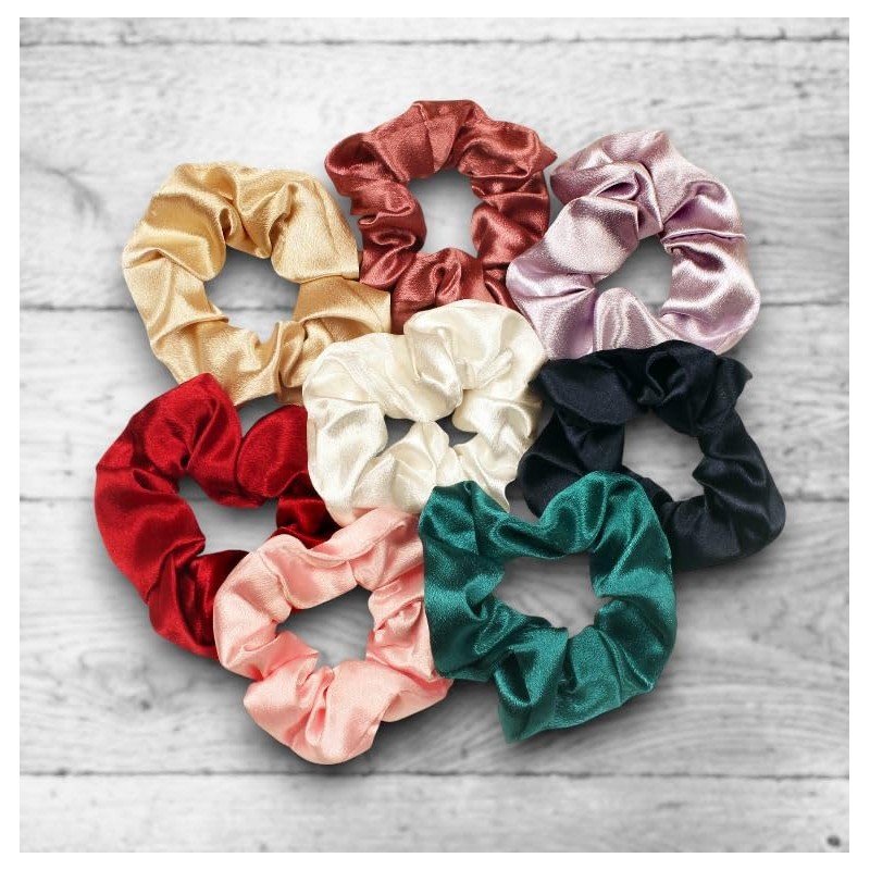 Silk Hair Scrunchies Set of 8 Scrunchies for Long, Thick, Thin and Curly Hair Bows with Soft Elastic Band for Work, Fitness, Party, Sleeping (Pink)
