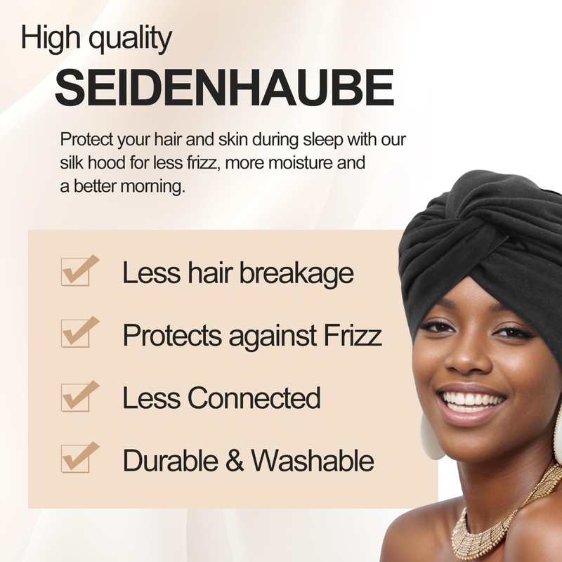 - Easy care and skin-friendly: the hair-friendly sleeping cap is machine washable at 30°C and retains its silky texture. No chemical additives or fragrances, dermatologically tested. A stylish gift for beauty enthusiasts who value gentle hair care routines.