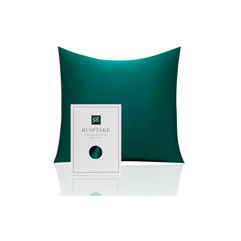 Silk Pillowcase 100% Silk 22 Momme OEKO-TEX® Certified, Benefits for Hair and Skin, Anti-Aging, Anti-Dust Mite (Dark Green, 60x60cm)