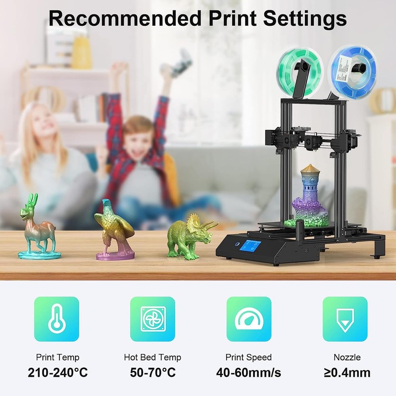 - Two-tone 3D printing filament: achieve a two-tone 3D print based on a solid color silk thread and combine blue and green to create personalized designs. Presents multifaceted objects and slight shadow changes. Easily create unique designs.