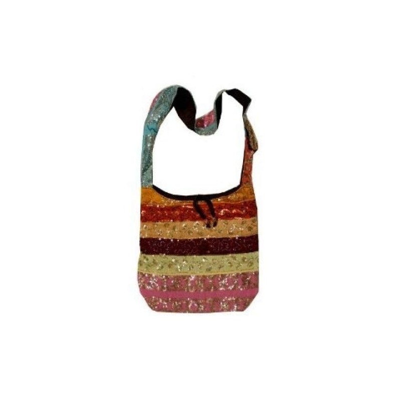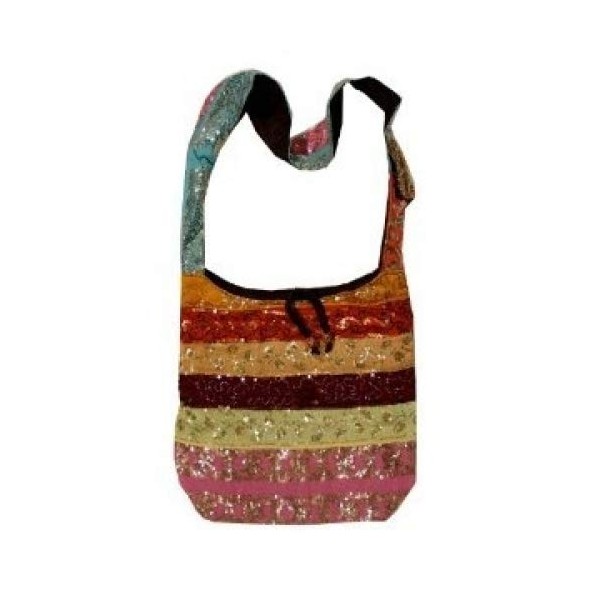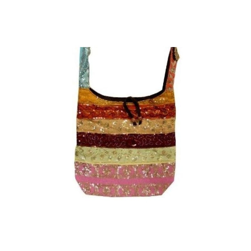 Stunning Silk Sari Shinning Sequined Beaded Hobo Hippie Sling / Cross body / Messenger bag is made from gorgeously sequined all over even the shoulder strap. This brand new bag is fully lined with matching heavy cotton fabric. Bag closes with Zipper / Tie and has a pocket inside and outside for cell phone. long strap makes the bag carry load comfortably. Please note: Because these bags are handmade one at a time they wont look exactly the same as shown above in the picture. But we will find and send you the best looking bag we have in stock.