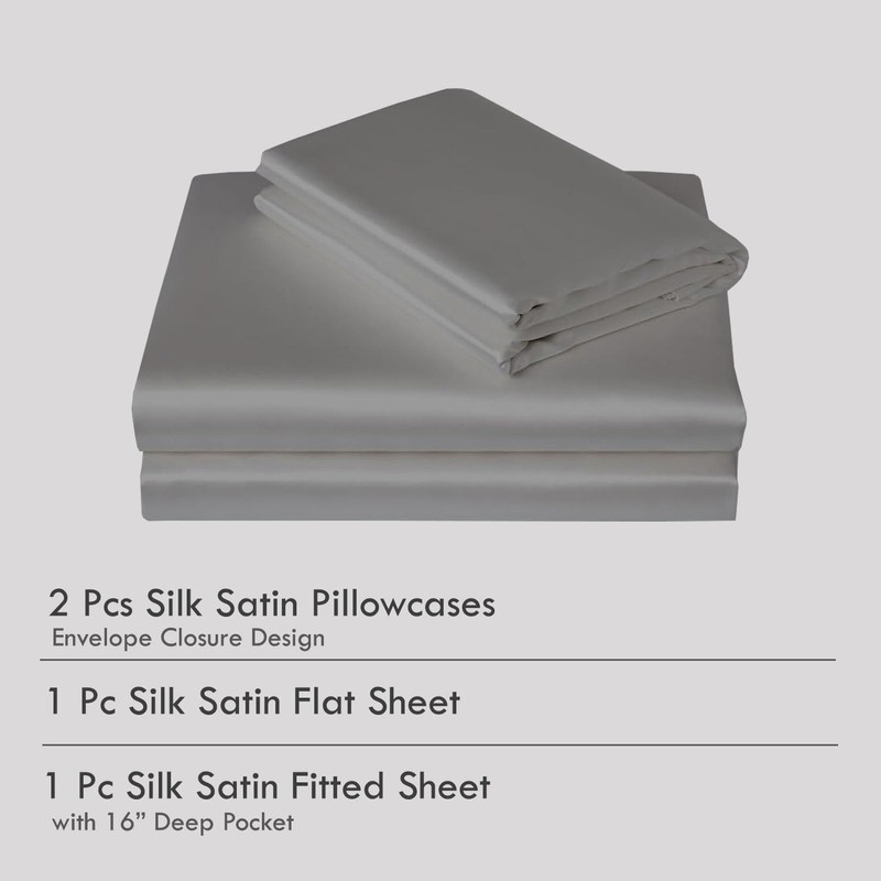 - RISK-FREE Shopping - We believe that you will love this Satin Sheet Set as much as we do. But if you decide that this satin bed sheet set is not for you, we offers returns or replacements in accordance with Amazon's after sales policy.