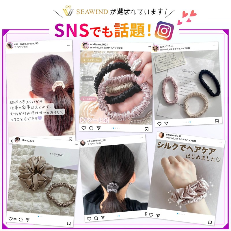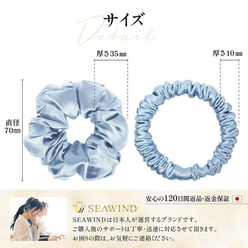 - (Beautiful Hair) The SEAWIND silk scrunchies are made of the highest quality silk rank of 6A. Silk is a fiber combined with 18 kinds of amino acids, and the main ingredient is "protein" similar to human skin. Contains a rich blend of Fibroin, which is expected to achieve a beautiful hair