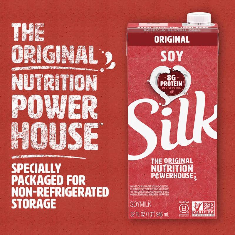 Silk Shelf-Stable Soy Milk, Original, Dairy-Free, Vegan, Non-GMO Project Verified, 32 Fl Oz (Pack of 6)