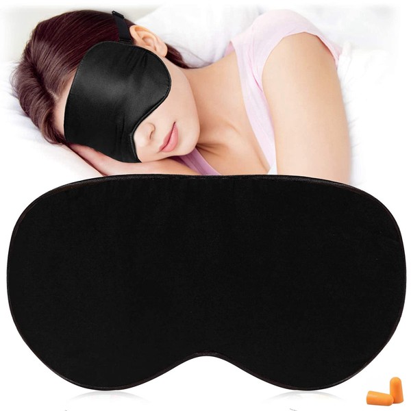 Silk Sleep Masks and Blindfold, Super Smooth Eye Mask for Sleeping, with Adjustable Strap, Suitable for Travel, Nap, Night Sleep (Black)