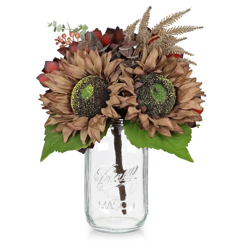 - Superb Quality - Crafted with high quality silk flowers and paper wrapped stems with internal wires, this fall floral maintains its vibrant beauty without any maintenance. The entire silk flower arrangements is easily removable from the jar—use it as a standalone bouquet for weddings or events, or reassemble it effortlessly. The reusable glass jar adds versatile functionality for DIY enthusiasts.Designed for instant seasonal charm—display straight from the package with no floral skills needed