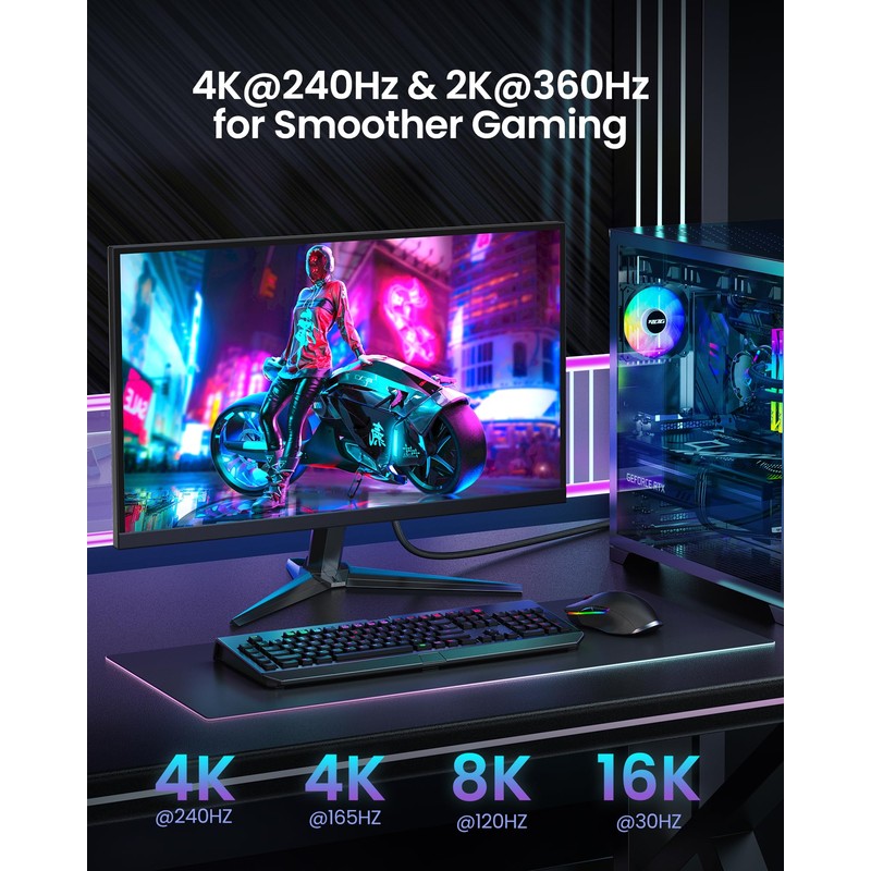 - 【Ultimate Gaming Experience】Silkland 16K displayport cable supports all popular graphics cards and monitors. Unlike 4K/8K DP cables, 16K displayport 2.1 can provide 40Gbps bandwidth, HBR3, DSC 1.2a. Dynamic HDR enhances dark scenes and details. The 32-bit audio captures enemy footsteps and breathing, especially in FPS and 3A masterpieces. Experience the thrill of multi-screen gaming with MTS multi-stream transmission. This is your all-in-one DisplayPort cable for the next decade