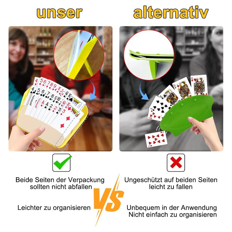 - Ergonomic multi-generation design: with approx. 100 g lightweight and rounded edges specially optimised for children's hands. The 14 mm to 18 mm card slots fit all standard games (poker/UNO/Skat) and allow even seniors to easily remove cards.