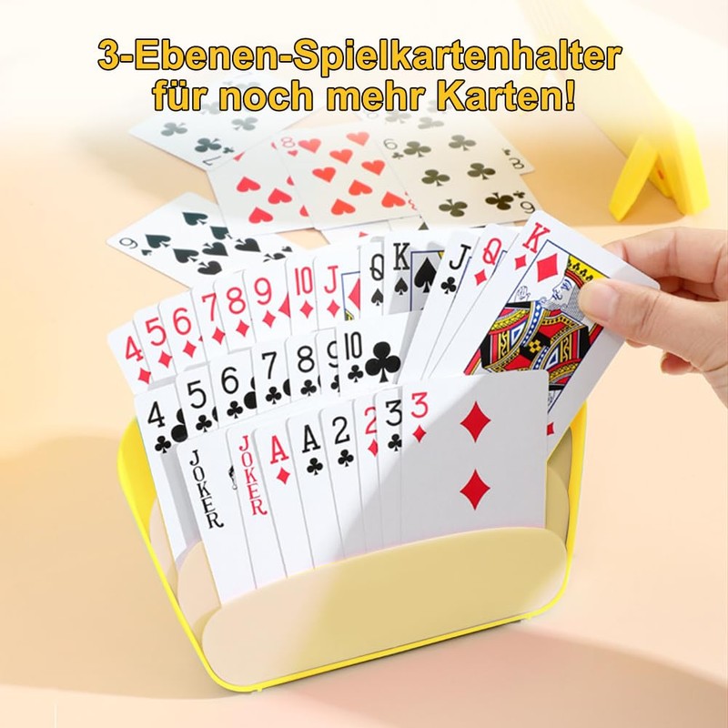 Silkwish 4 x playing card holders with 2 boxes (without playing cards) - 3-tier card holder for playing cards, UNO - playing card stand for standing made of plastic card holder for seniors, children,