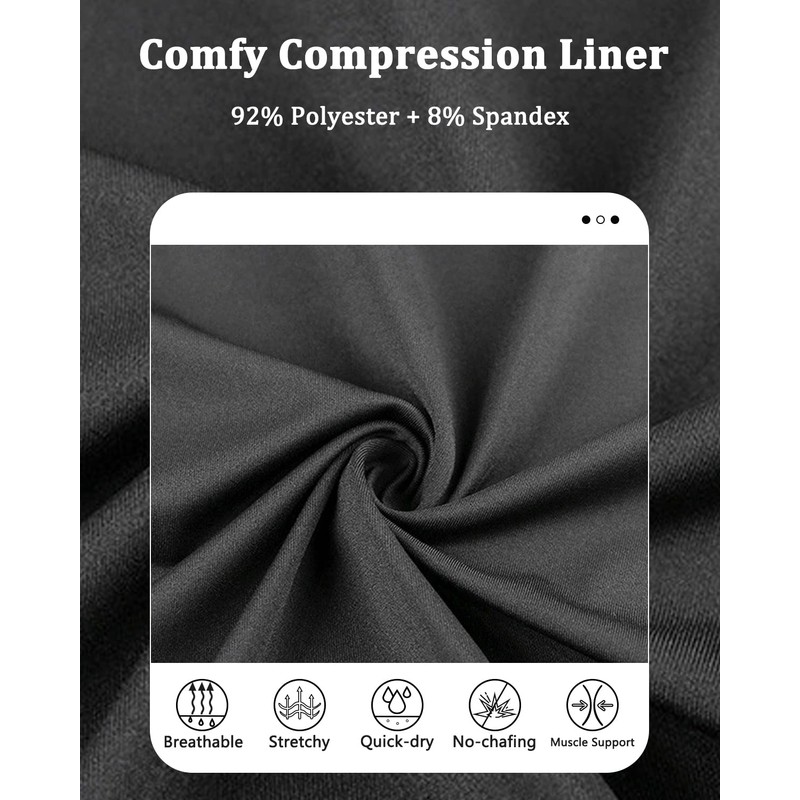 - 2 in 1 Mens Swim Trunks with Boxer Brief Liner: Built-in compression lining protects your skin from scratch and prevents from sticking to your skin when the shorts are soaked; Additionally, it provides better breathability and elasticity