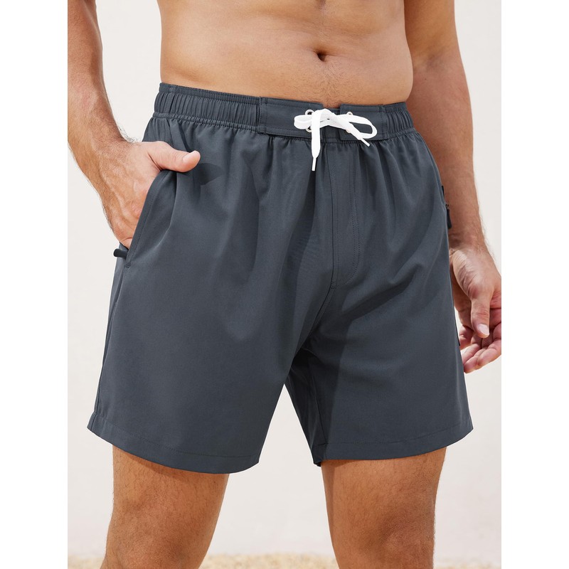 SILKWORLD Swim Trunks for Men Compression Lined Swimsuit 6 in Swimming Shorts Quick-Dry Bathing Suits with Zipper Pocket, Charcoal Grey, Large