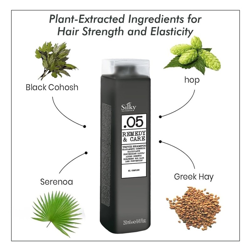 SILKY .05 Organic Trivix Shampoo - Hair Loss Shampoo with Plant Extracts - Hydrating Shampoo Free from Harmful Chemicals - Cruelty Free Shampoo for Hair Fall Control and Hair Renewal - 250ml