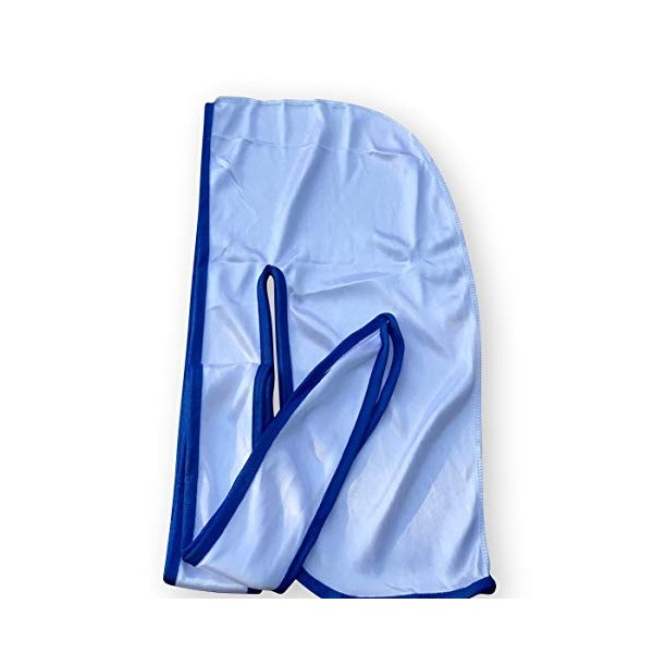 Silky Durag - (White with Blue) 360 Waves - Extra Long/Wide Straps