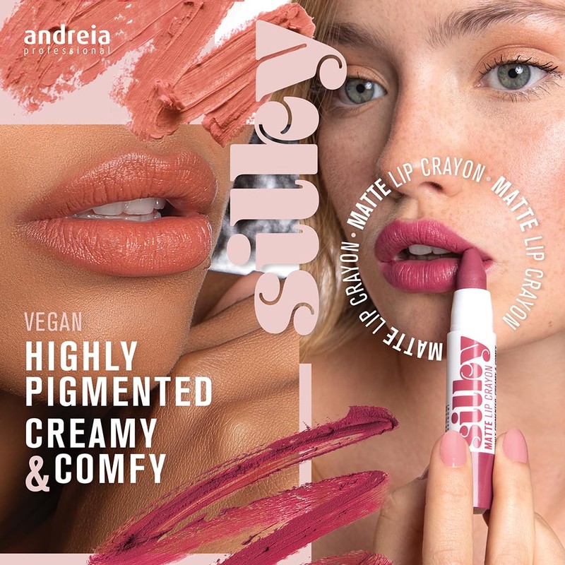 Silky Lipstick Jumbo Matte Lip Pencil Crayon - Highly Pigmented Creamy, Long-lasting - Colour 01 Plum, 2.8g - Andreia Professional