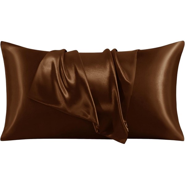 Silky Satin Standard Pillowcases Set of 2, Super Soft and Luxury, Hidden Zipper Design (Coffee, Standard (20" x 26"))