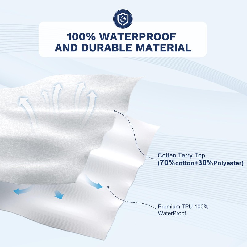 - 100% Waterproof Protection with Premium TPU Backing: Our mattress protector features a high-quality TPU waterproof layer that effectively prevents liquid penetration, including sweat, urine, and other accidental spills, ensuring your mattress stays dry and clean. Perfect for families with children, pets, or elderly members.