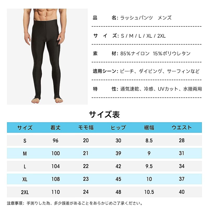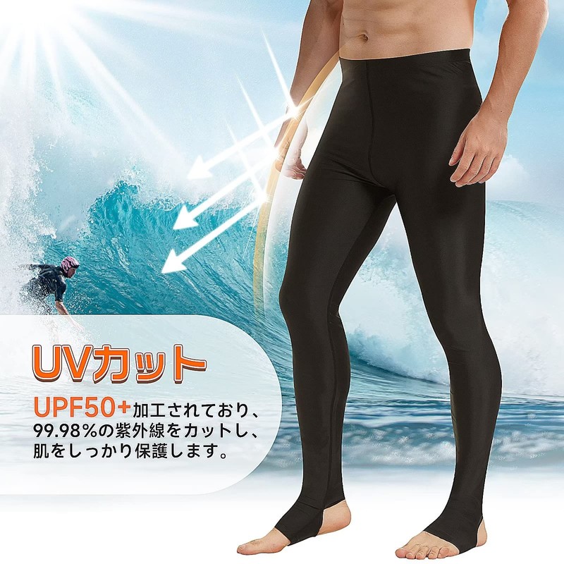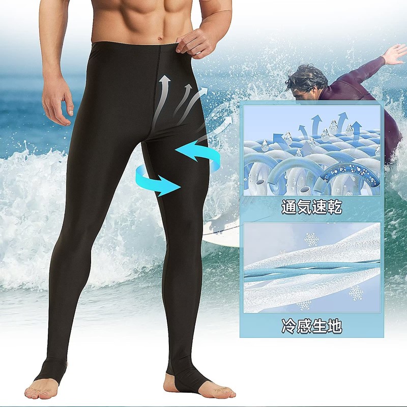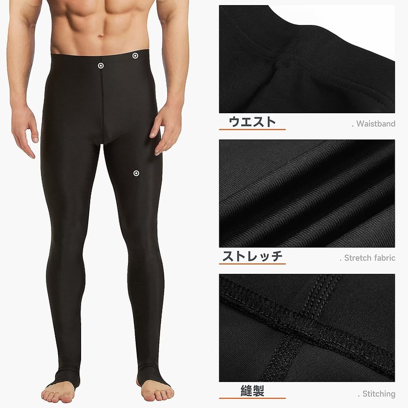 Sillictor Men's Rash Guard, Leggings, Swimwear, Spats, Long Pants, Amphibious, Compression, Tights, Sports, Swimming, Rash Trenka, UV Protection, Cool and Quick Drying, black