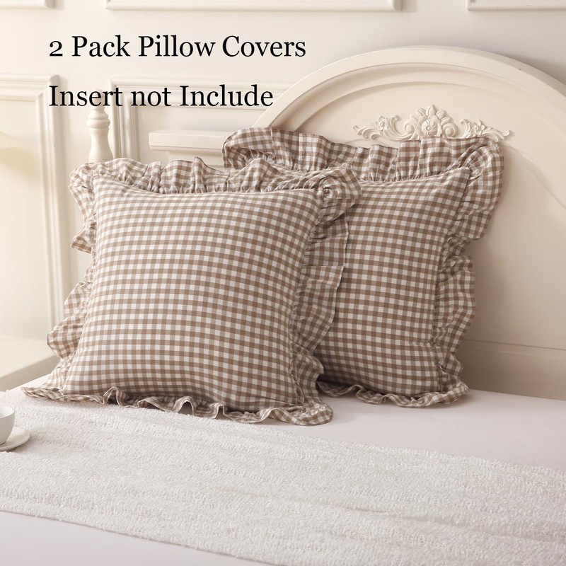 - These pillowcases feature a timeless plaid pattern that exudes rustic charm, enhanced by delicate ruffles that add a touch of vintage elegance to your bedroom decor. Perfect for creating a cozy, country-inspired look
