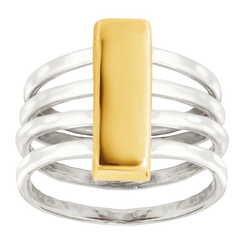 • This mixed-metal ring is more than just pretty; it's fun to wear! The four sterling silver bands and brass center each move separately, giving it a touch of free spirit to match your own. The brass will develop a natural patina over time