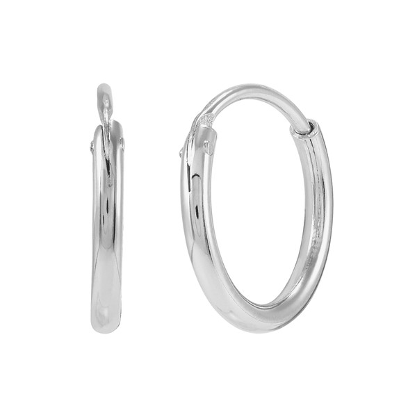 - Add a touch of simplicity to your outfit with these classic hoop earrings. The sleek and simple silhouette is a versatile style that goes from day to night. Crafted in polished sterling silver, these hoops are the perfect choice for someone looking for a minimalist yet stylish look. The pieces come with a '.925' sterling silver stamp as a symbol of guaranteed product quality.