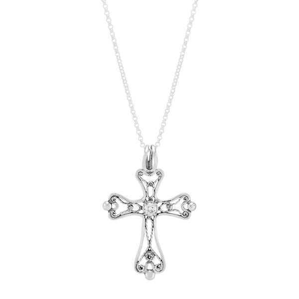 - This necklace blends spiritual significance with classic style. A timeless symbol of faith and devotion, this cross pendant necklace features a 4mm radiant white cubic zirconia. It's a thoughtful gift or addition to your collection. The piece comes with a “.925” sterling silver stamp as a symbol of guaranteed product quality.