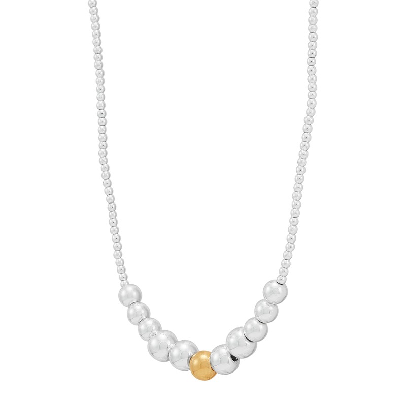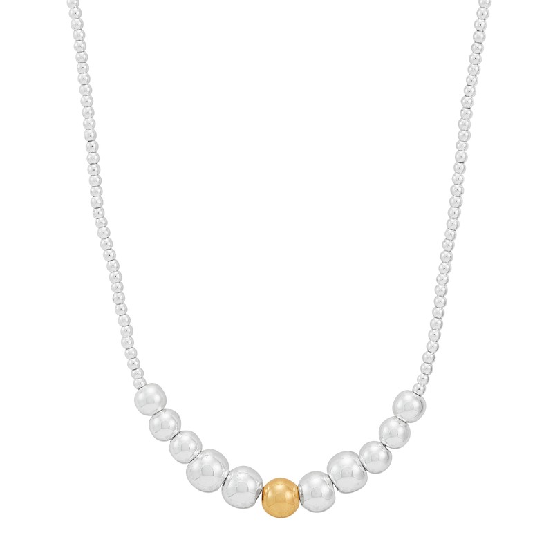 - This necklace features an elegant mix of 2.5mm, 6mm, and 8mm hematite beads. The sleek, metallic beads offer a refined contrast to the 14k yellow gold-plated sterling silver centerpiece, which expresses timeless luxury. Perfect for the fashion-forward woman, this necklace brings a chic, polished edge. To prolong the beauty of silver-plated hematite stones, avoid heat and moisture. The piece comes with a “.925” sterling silver quality stamp as a symbol of guaranteed product quality.