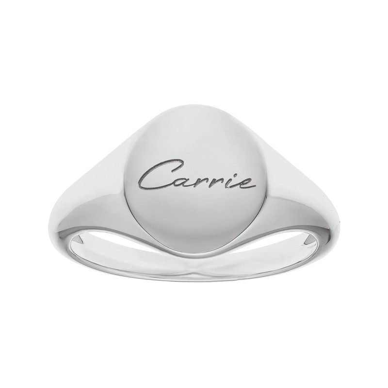 - Create your very own ring by engraving this signet band ring. Personalize this timeless ring for yourself or as a gift to that special person in your life! Customize it with a meaningful date, name, initials, or a saying of your choice. Ring measures 7/16 inches in width. Pieces come with a ".925" sterling silver stamp as a symbol of guaranteed product quality.