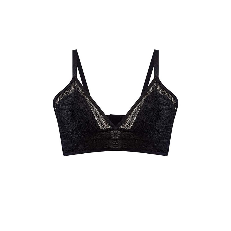 SilRiver Women's Lace Bralette Non-Wired Silk Bra, black