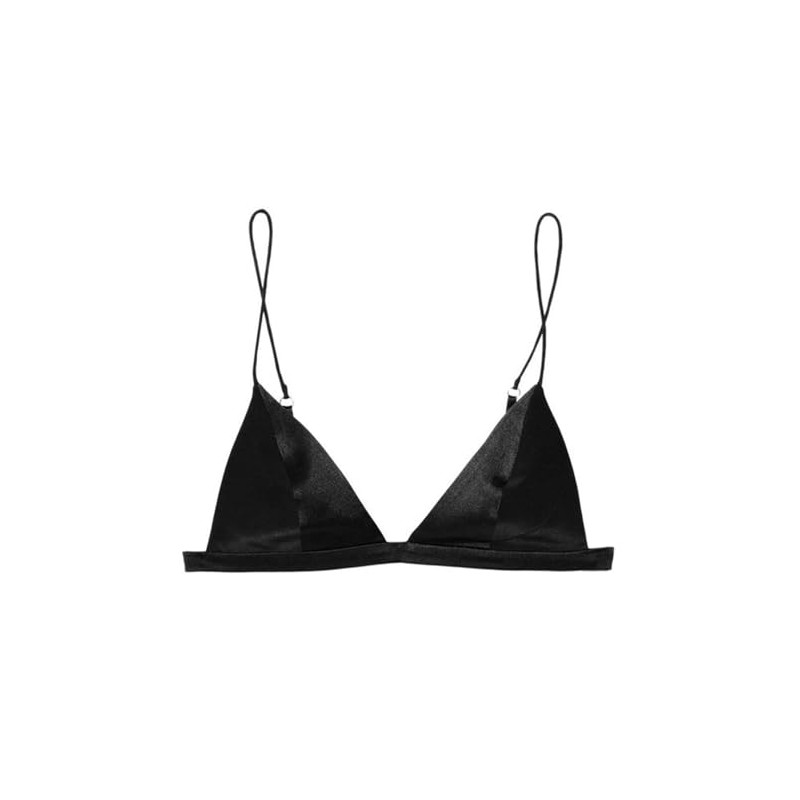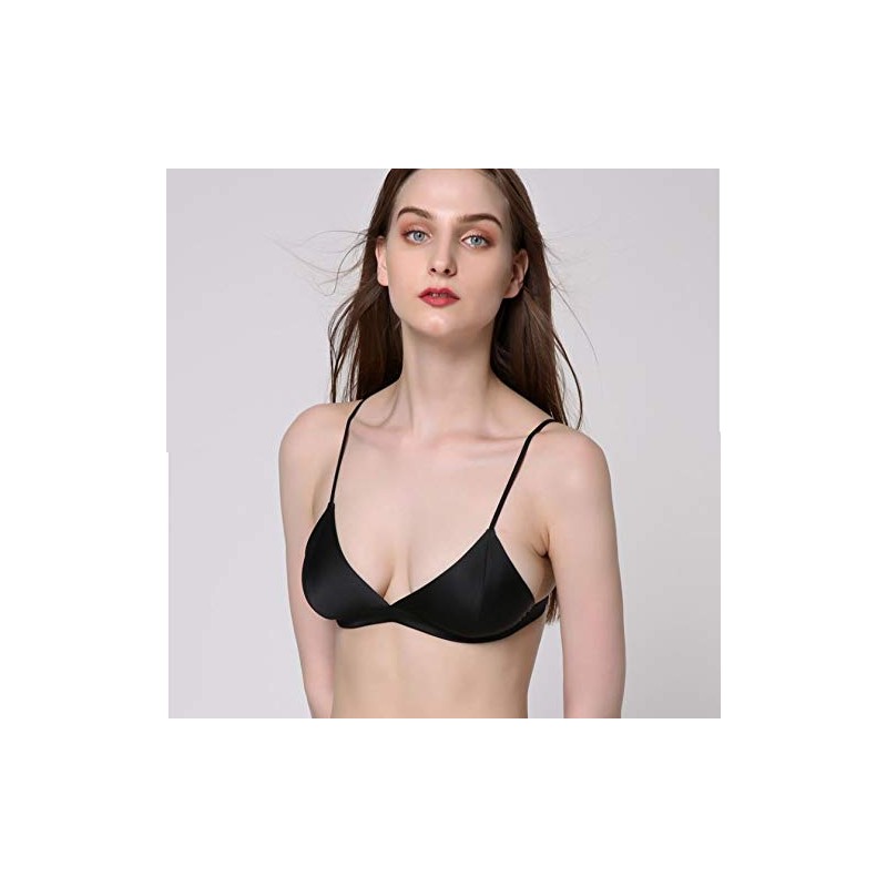 SilRiver Women's Silk Satin Triangle Bralette Soft Cup Wireless Bra Smooth and Comfortable Wire Free Bra Top (Large, Black)