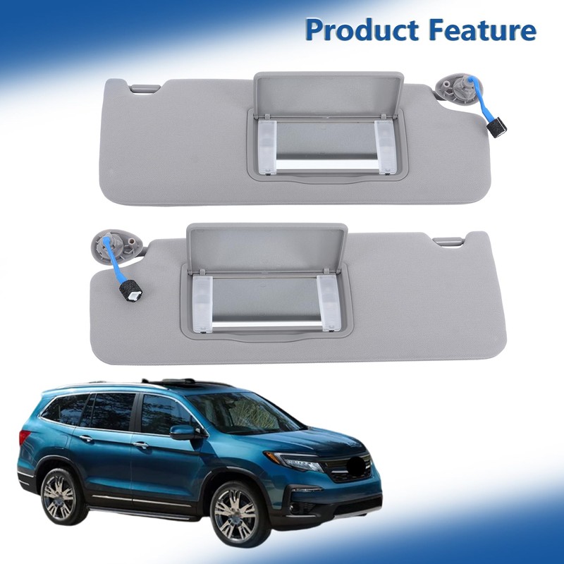 Silscvtt Driver and Passenger Side Sun Visor Gray with Mirror and Light Replacement for Honda Pilot 2017-2021 Replacement for Honda Ridgeline 2018-2020 83280-TG7-A12ZB 83230-TG7-A12ZB