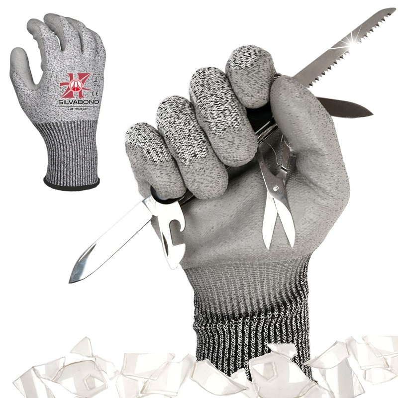 SILVABOND Cut Resistant Gloves, Anti-Slip Gloves, With Coating, Abrasion Resistant, Tear Resistant, Cut Resistant Level 5, Work Gloves, Disaster Prevention (1, Medium)