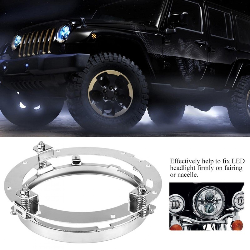 Silver 7 Inch Round Headlight Ring Mounting Bracket Compatible with Round LED Headlight Mount Bracket Ring Stainless Head Light Lamp Holder