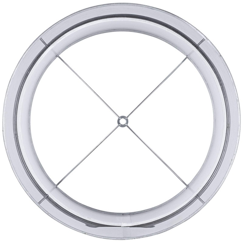 - Sheer silver polyester fabric over clear polystyrene on outer shade.