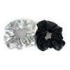 Silver Black pack 2 lamé lame shiny fabric stretch ponytail holders scrunchy 1970s disco style