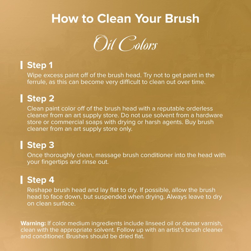 Our artist brushes are created with a blend of synthetic fibers and natural squirrel hair. Each tip is capable of carrying a lot of paint while maintaining silky smooth strokes. The short handle will sit comfortably in your hand as you perfect your tabletop painting. After using one of our Atelier brushes, be sure to clean it properly. After you have completed a painting session, wipe the brush with a towel. Next, run it under warm water if you are using water-based media. Use an odorless solvent to remove oil paint. Remember to never leave an Atelier brush soaking in liquid as this can damage the handle.