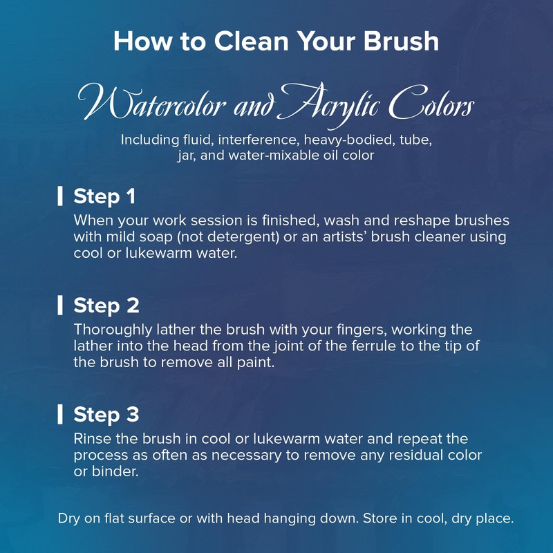 Our Bristlon art brushes are created with a superior blend of synthetics. Our synthetic brushes for acrylic painting imitate natural hog bristle brushes and create beautifully textured creations. This product line consists of our stiffest brushes that provide the right amount of snap. They are extremely durable and can stand up to rough textures. The Bristlon professional brushes are capable of holding the right amount of paint, giving you more time to focus on your masterpiece. The long wooden handle will sit comfortably in your hand as you perfect your easel painting. The ferrule is made from nickel-plated brass and contains a triple-crimped, triple epoxy barrier. This upholds the life of the brush by reducing the chance of water damage. After you have completed a painting session, wipe the brush with a towel. Run the brush under warm water for acrylic paints or use odorless solvent for oils. Once the running water or odorless solvent has removed the color from your brush, lay it flat to dry. Watch your dreams come to life with our Bristlon brushes.
