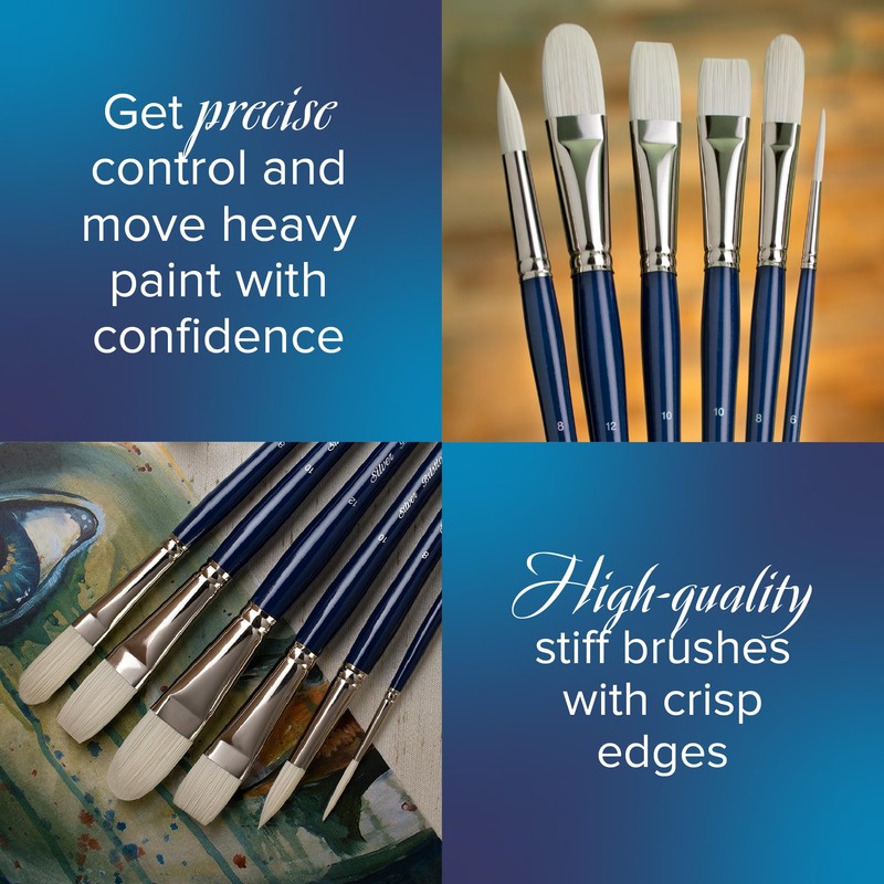 - BRISTLON: Our Bristlon product line was created for artists who use acrylic or oil paint. Each brush has excellent paint-holding capabilities and creates lightly textured strokes on painting surfaces. This stiffest synthetic brush series is snappy and durable with fine points and chiseled edges for crisp strokes. Bristlon gives the artist control of their strokes and color blending, layering and glazing