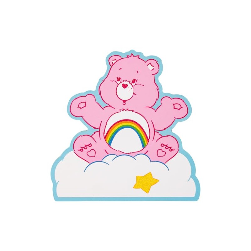 • ADORABLE DESIGN: Features the Care Bears sitting on a fluffy cloud, with glitter accents that add a magical sparkle. This large die-cut MDF box wall sign is the perfect way to bring whimsical charm to your space.