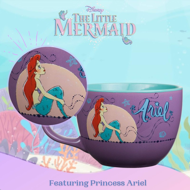 - Disney Little Sirena: la adorable taza de gran tamaño está diseñada en los clásicos colores verde azulado y púrpura de la princesa Ariel. Cuenta con Sirenita en la parte delantera con su nombre Ariel escrito en azul.