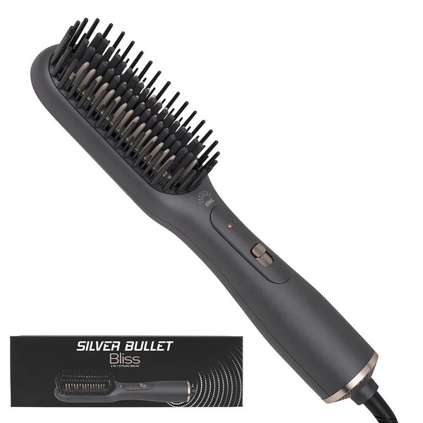 The Silver Bullet Bliss is a 2-in-1 Styling Brush that gently straightens and styles hair, providing super straight, frizz-free results without the damage of regular hair irons, while also giving finer hair types greater volume.
